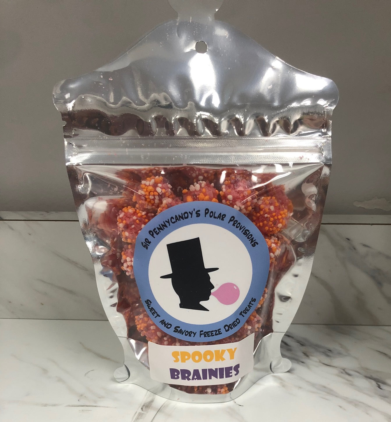 A seasonal special of your favorite candy coated gummy, freeze-dried to bring out that flavor and crunch. We call them Spooky Brainies! Get your crunch on and try some today! Available in single bags, a share pack (2 bags, one for you and one for a friend) or case of 20.
