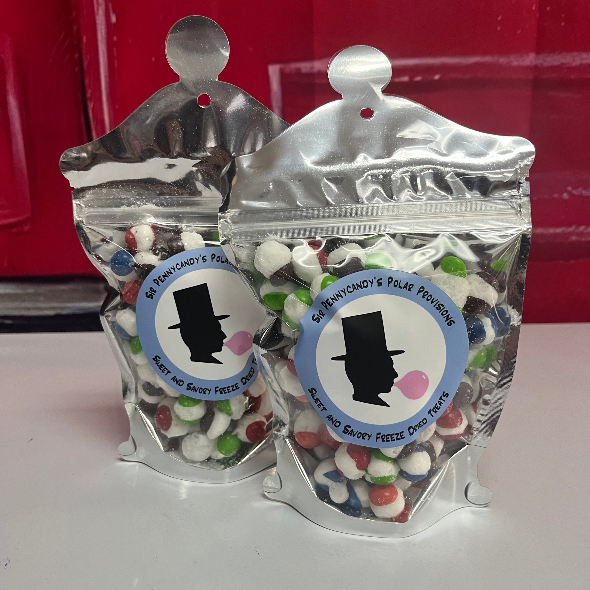 Now offering an additional flavor favorite of our popular Billiards freeze-dried candy. These crunchy candies are loaded with wild berry flavors which include raspberry, strawberry and wild cherry. You can always count on getting a fully popped crunch with us and we call this new flavor Wild Berry Billiards as they remind us of those colorful striped balls, especially when the clap together as we pour out buckets full. Now available in single bags as well as our popular FREE SHIPPING share packs (2 bags, one for you and one for a friend) or BULK PRICING in case of 20. Perfect for parties, fundraisers or pop-up shops.